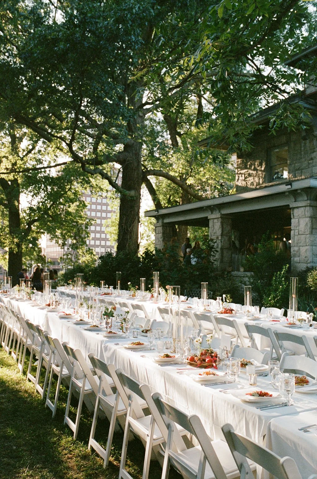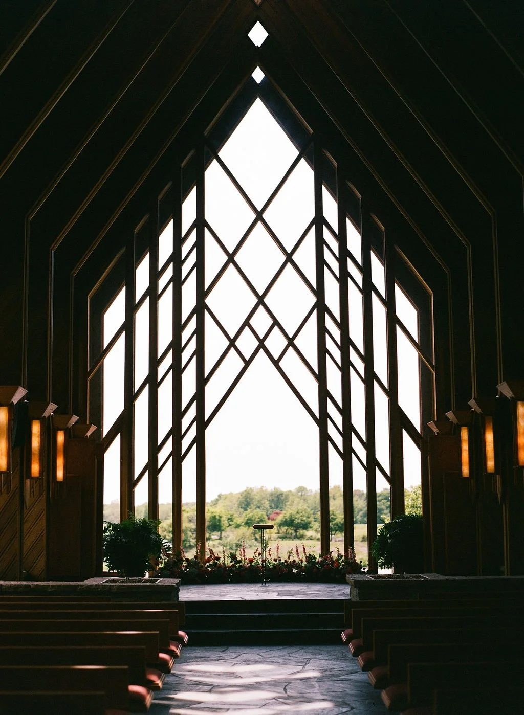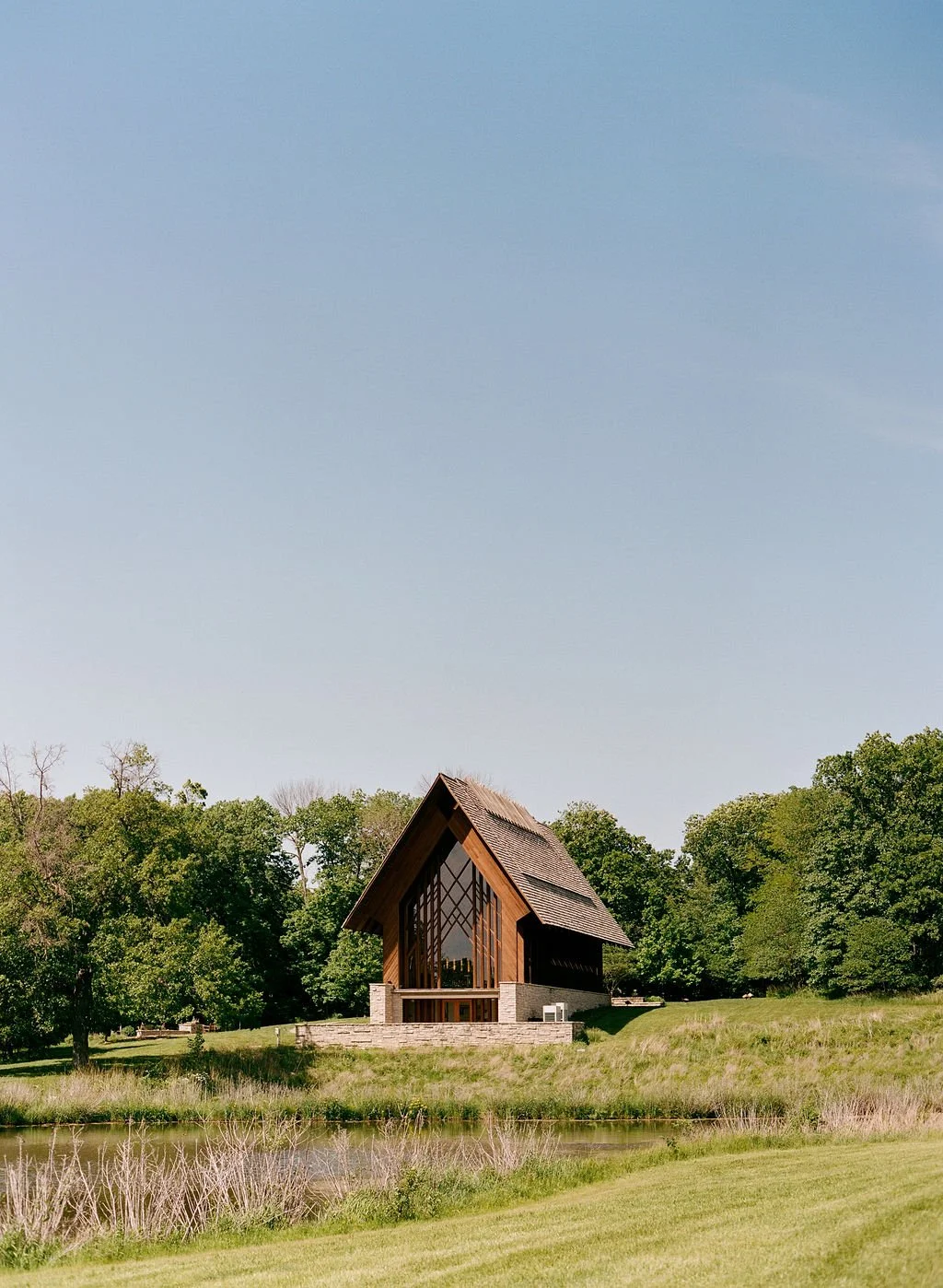 Open and airy partnered with a beautiful hillside vista. The potential for shooting film in this space is endless. Film will look lovely in any area. With unique architecture and rolling hills around the lake a Powell Gardens wedding is elegant in every season. Perfect for folks who love color, a lower ISO film stock, and getting to experience light all day long.