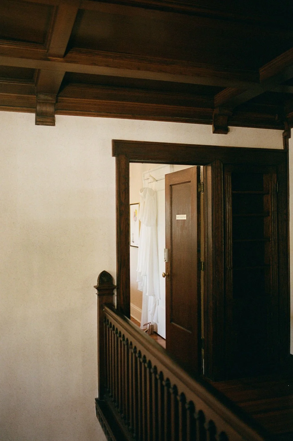 Talk about charm. Bookish, warm, and full of stunning details, a wedding at Longview Mansion is dreamy. Film suits this space so well. Low light, playing with shadows, and plenty of spaces to explore for variety. This venue was made for a film photographer. I love finding little pockets of light here and experimenting both with the indoor lighting and the west facing windows as the sun goes down. There isnβt a bad spot in this venue!